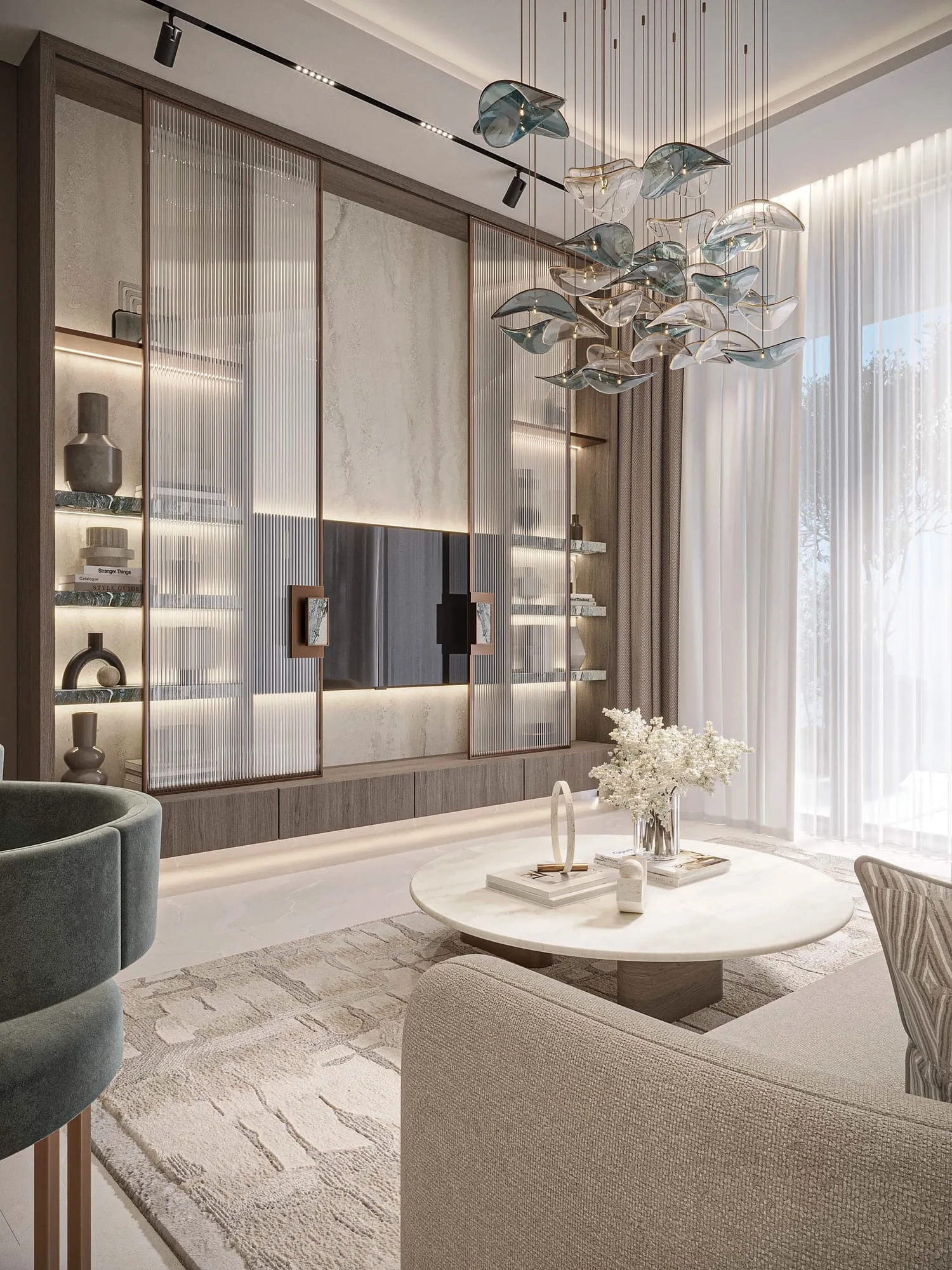 The interiors of 241 Waterside are shaped by a premium material palette that emphasizes natural textures and luxury craftsmanship. Finishes include high-quality stone surfaces, refined wall treatments, and elegant color tones that create a calm and modern atmosphere. Kitchens and household appliances feature Miele and Smeg, providing reliable performance and a high-end user experience. Bathroom fittings and hardware come from Gessi, combining precision engineering with timeless minimalist design. Homes include Orvibo smart home automation for lighting, climate, and security controls, ensuring modern convenience integrated seamlessly into the living space.