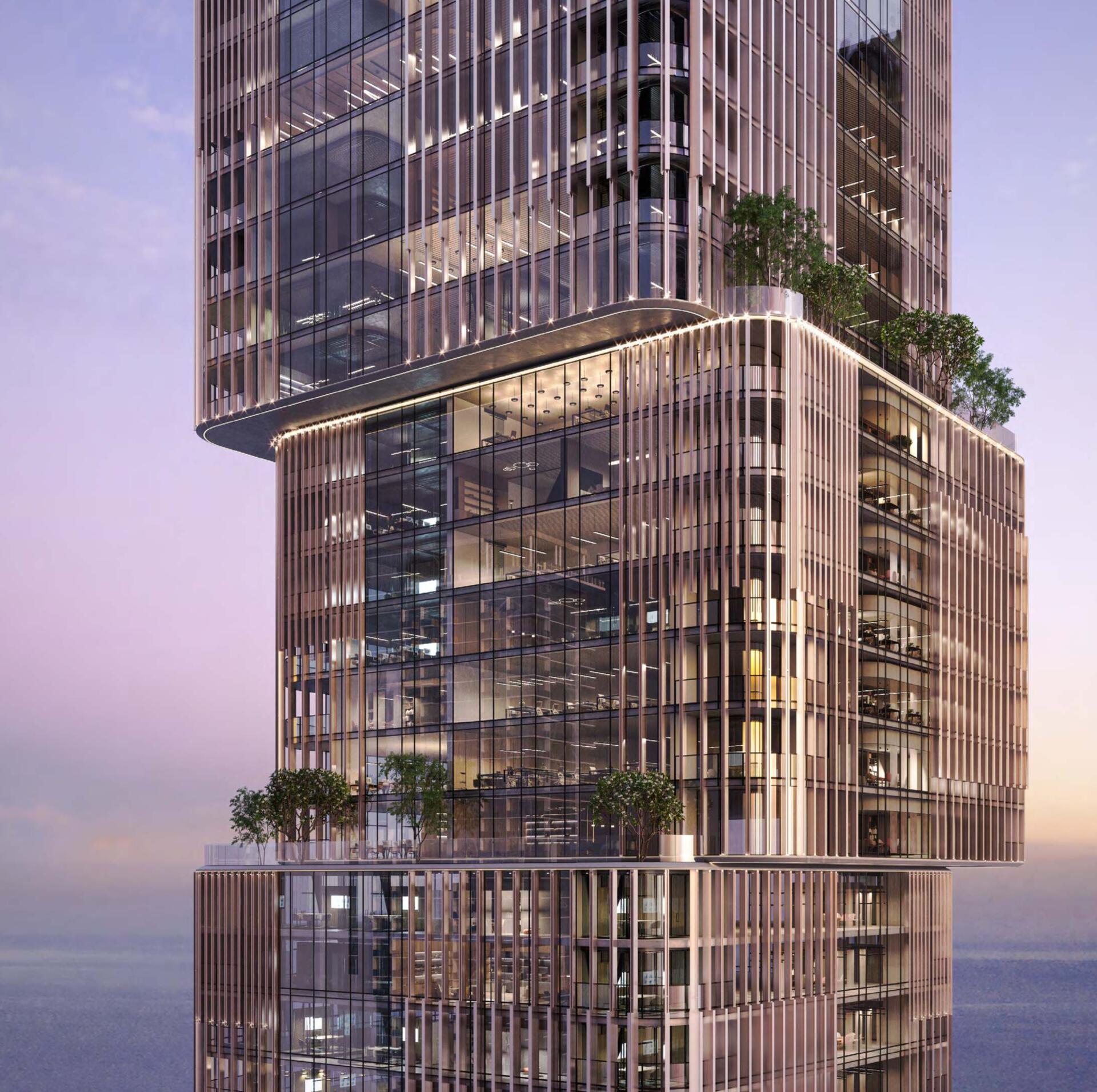 Positioned to maximise natural light and orientation, the elevated floors offer uninterrupted panoramas across sea, city and landscape. The precision of the facade and glazing design ensures every workspace benefits from both visual connection and comfort.