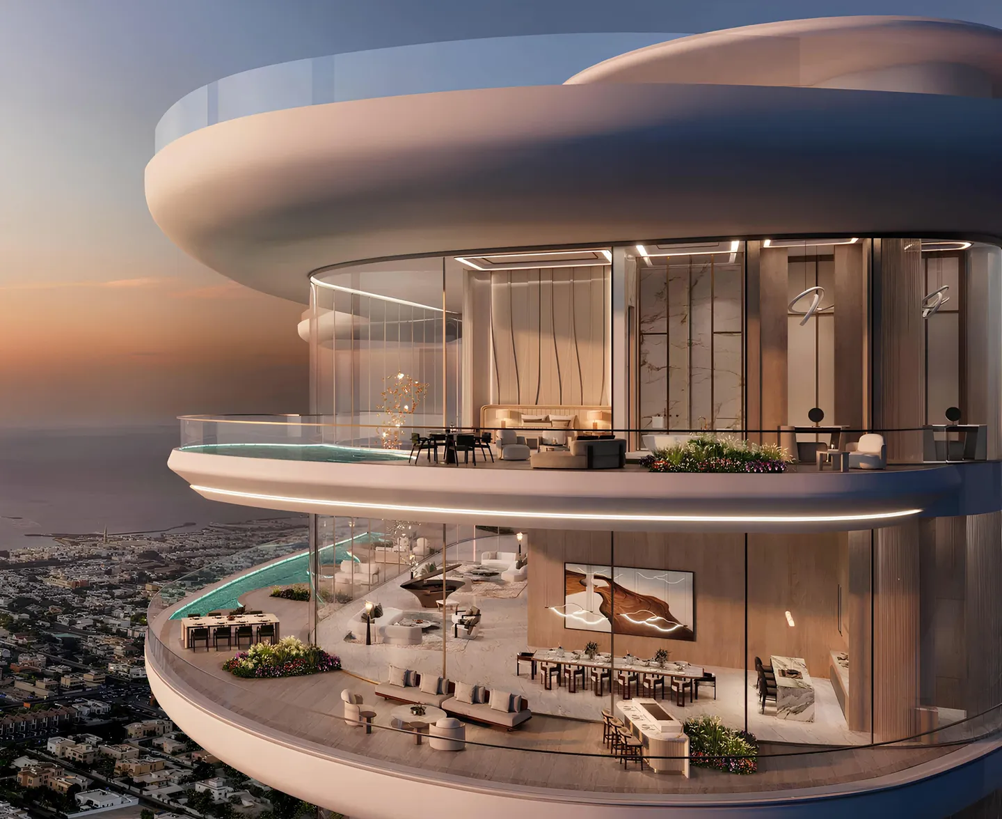 The complex offers spaces for leisure, sports, and social interaction. Residents have access to swimming pools, spa areas, a fitness center, yoga studios, and private pools for each residence.