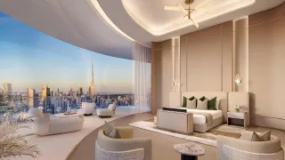 Amali Residences features residences with two, three, and four bedrooms, five-bedroom penthouses, five-bedroom podium villas, as well as six-bedroom sky mansions. The interiors are designed in a contemporary aesthetic using natural materials and a calm natural palette inspired by tones of stone, sand, and wood.
