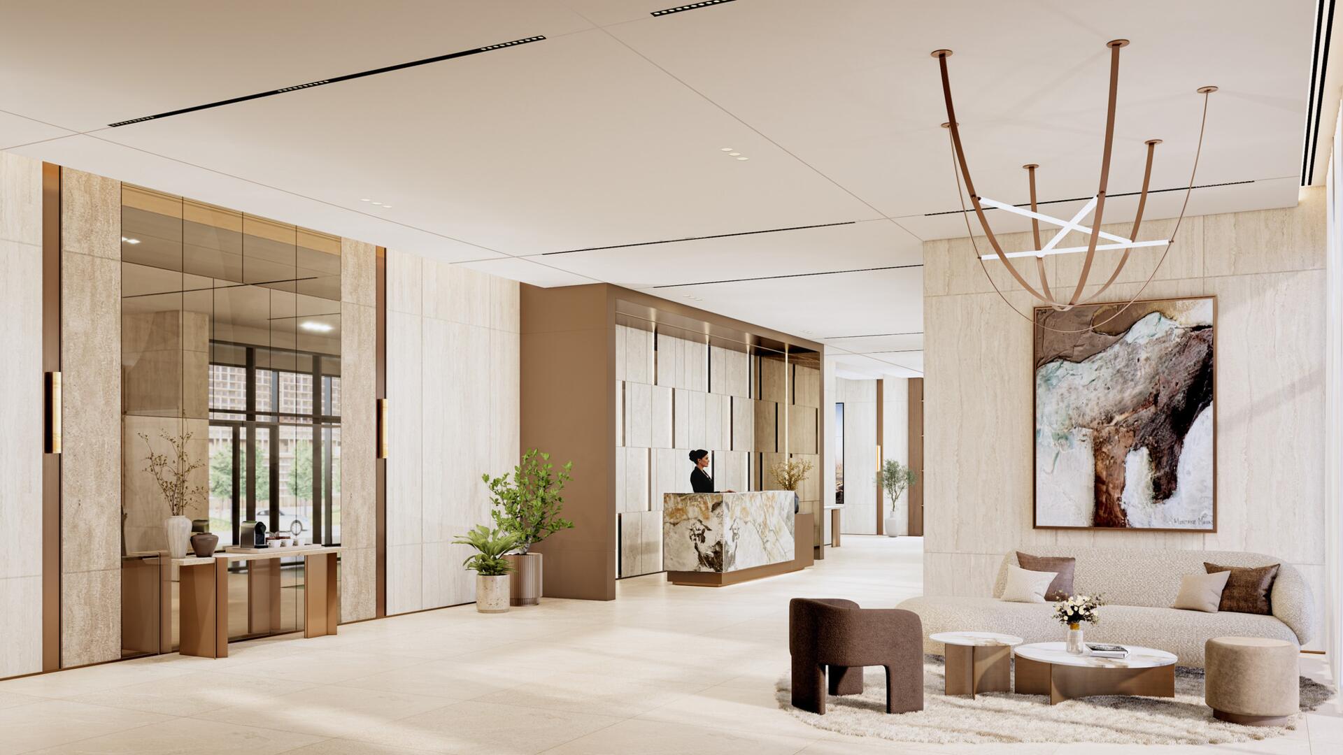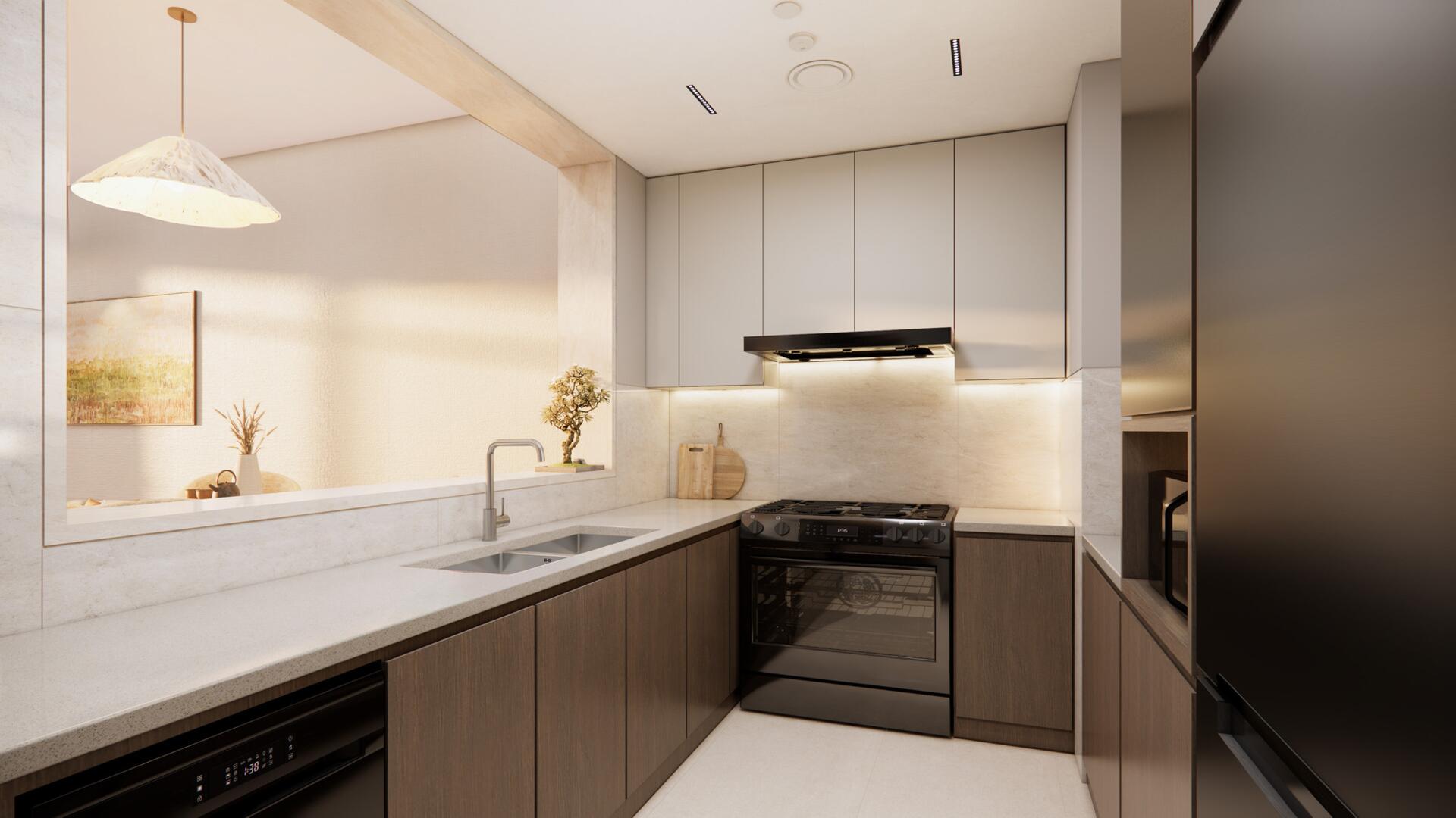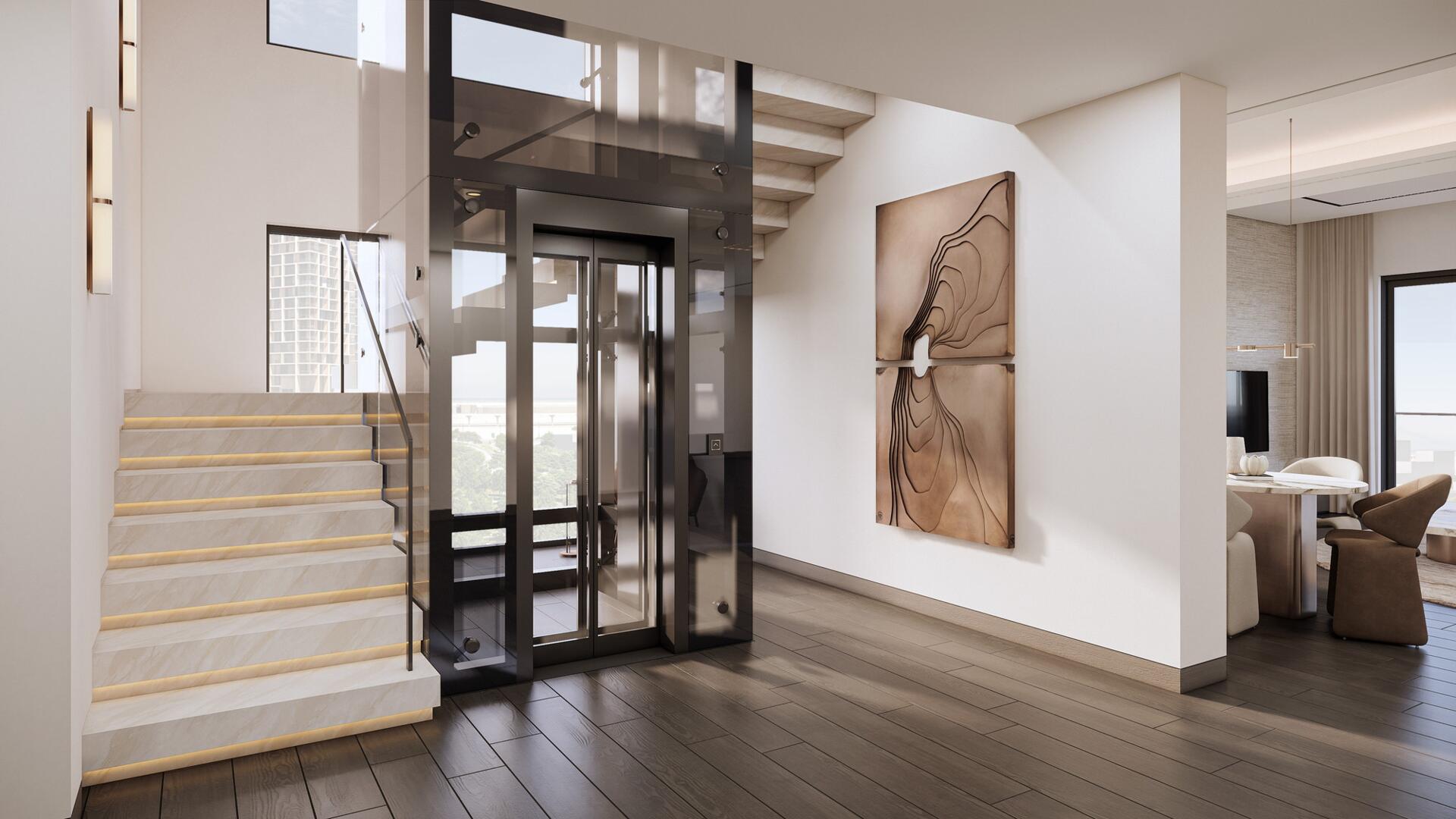 The complex includes studios, one-, two- and three-bedroom apartments, two-bedroom duplex residences, three- and four-bedroom townhouses, and three-bedroom penthouses. Most layouts include staff rooms, while duplexes and penthouses are equipped with private elevators. Large windows provide natural light, and interiors use high-quality finishes and built-in storage systems.