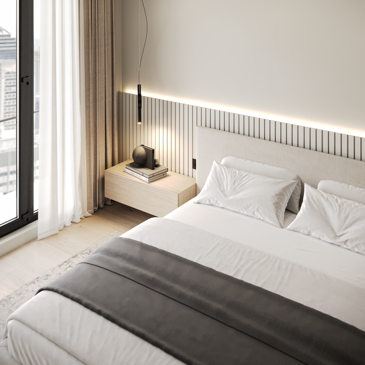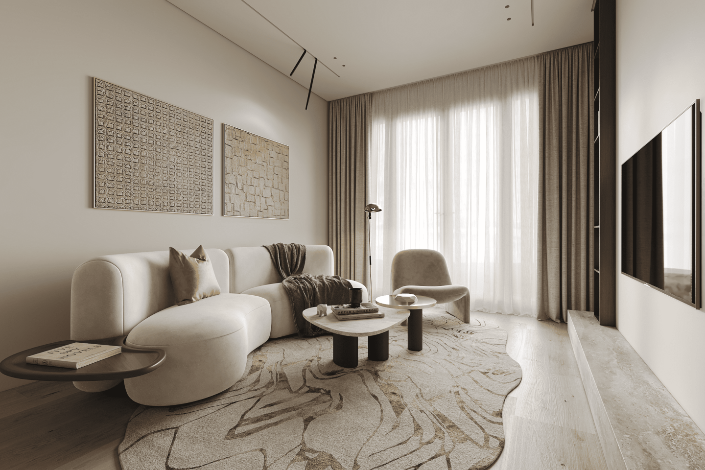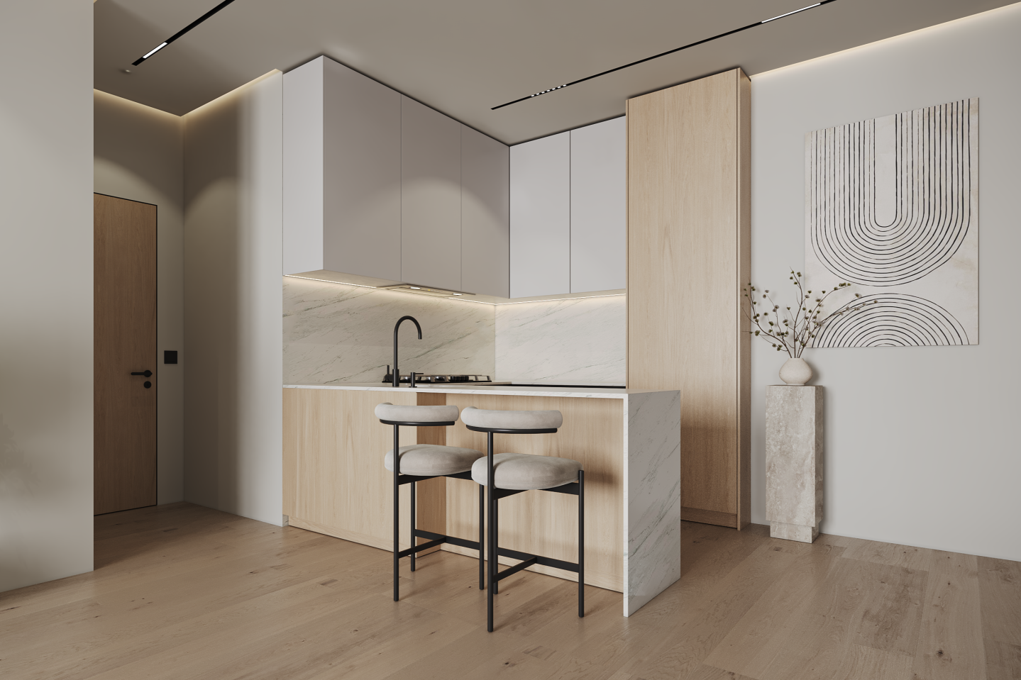 The development offers a selection of modern apartments with private balconies or terraces, fitted wardrobes, kitchen appliances, and elegant bathrooms. Interiors are designed in a minimalist yet warm style, featuring refined finishes and high-quality materials. Amenities include a rooftop swimming pool, a fully equipped gym, lobby with reception, central A/C system, and 24/7 security, creating a comfortable and secure living environment.