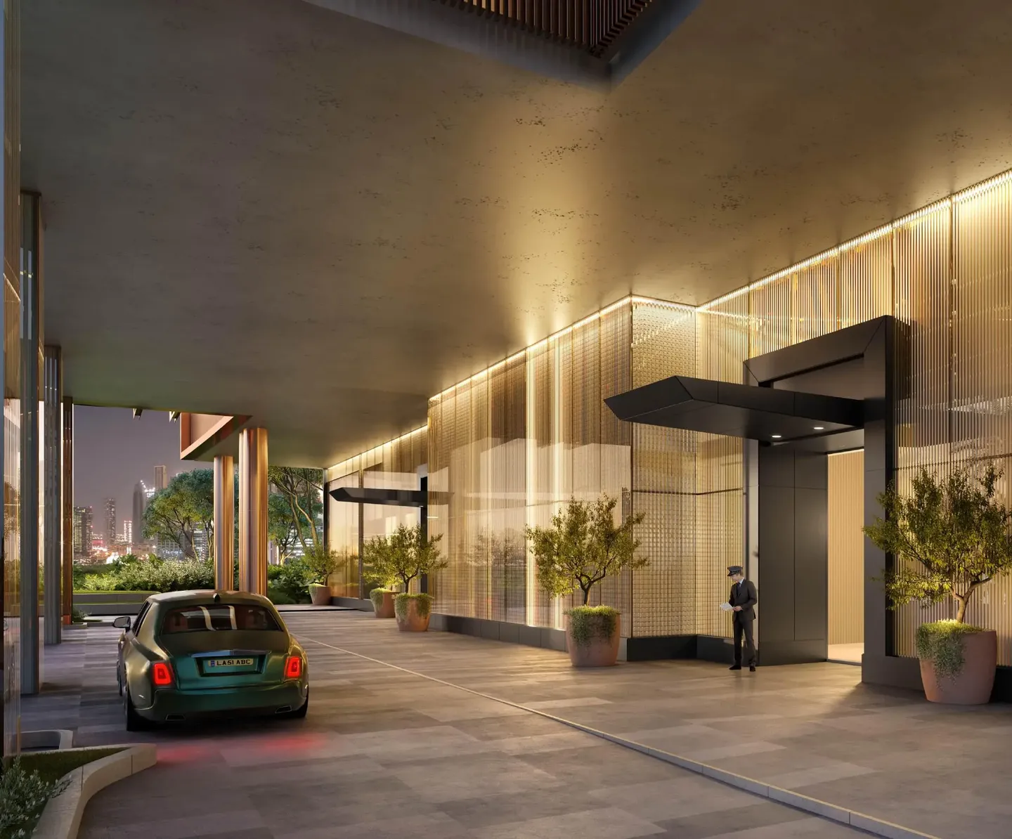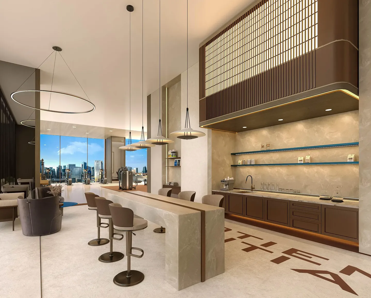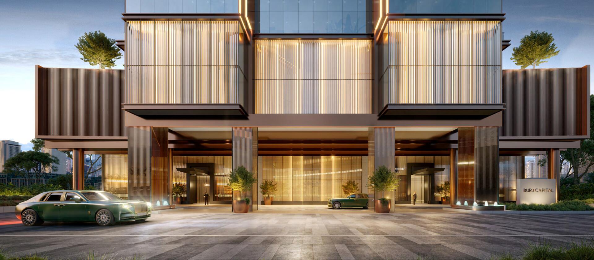 The complex provides executive offices and collaboration areas, wellness and fitness rooms, raised green terraces and relaxation areas, panoramic viewing platforms, high-end retail and F&B outlets, and intelligent access systems. Valet parking and secure multi-level parking are also available.