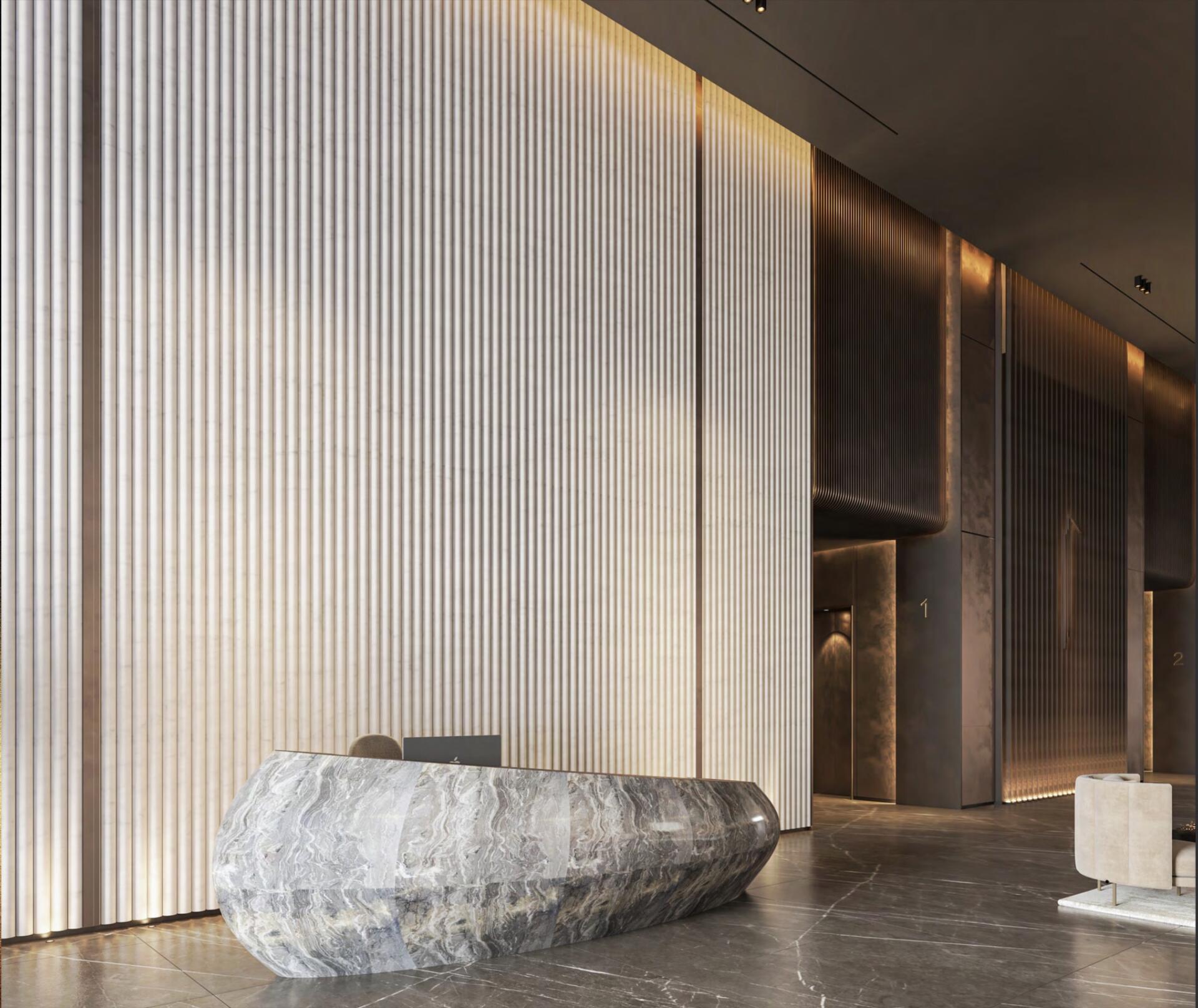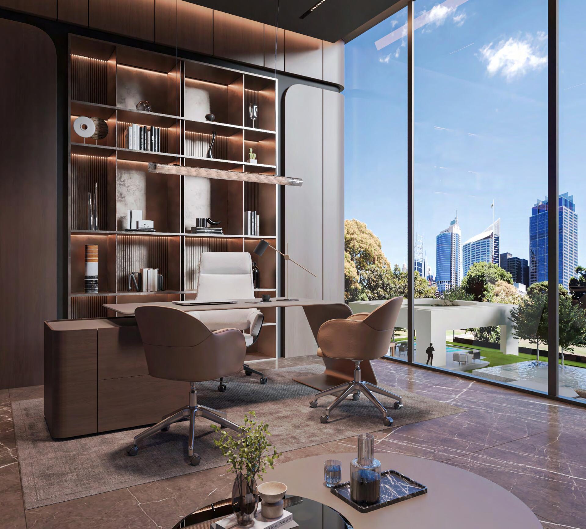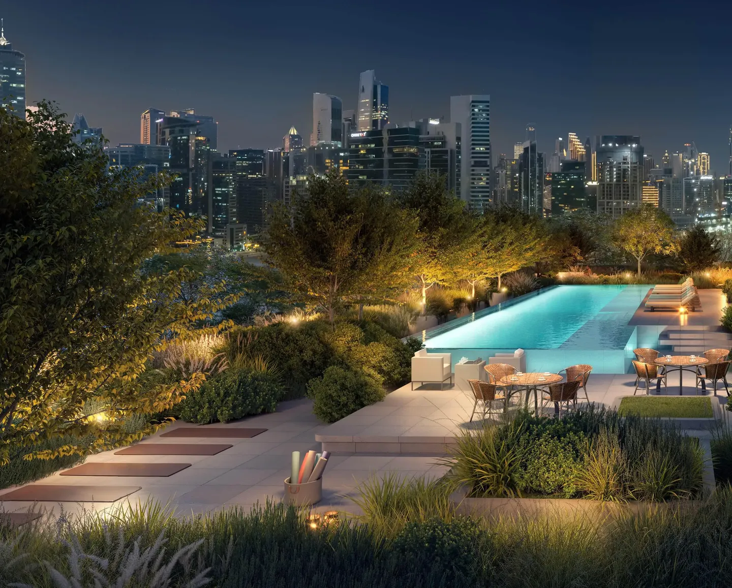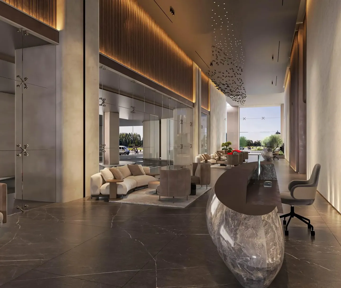 The complex provides executive offices and collaboration areas, wellness and fitness rooms, raised green terraces and relaxation areas, panoramic viewing platforms, high-end retail and F&B outlets, and intelligent access systems. Valet parking and secure multi-level parking are also available.