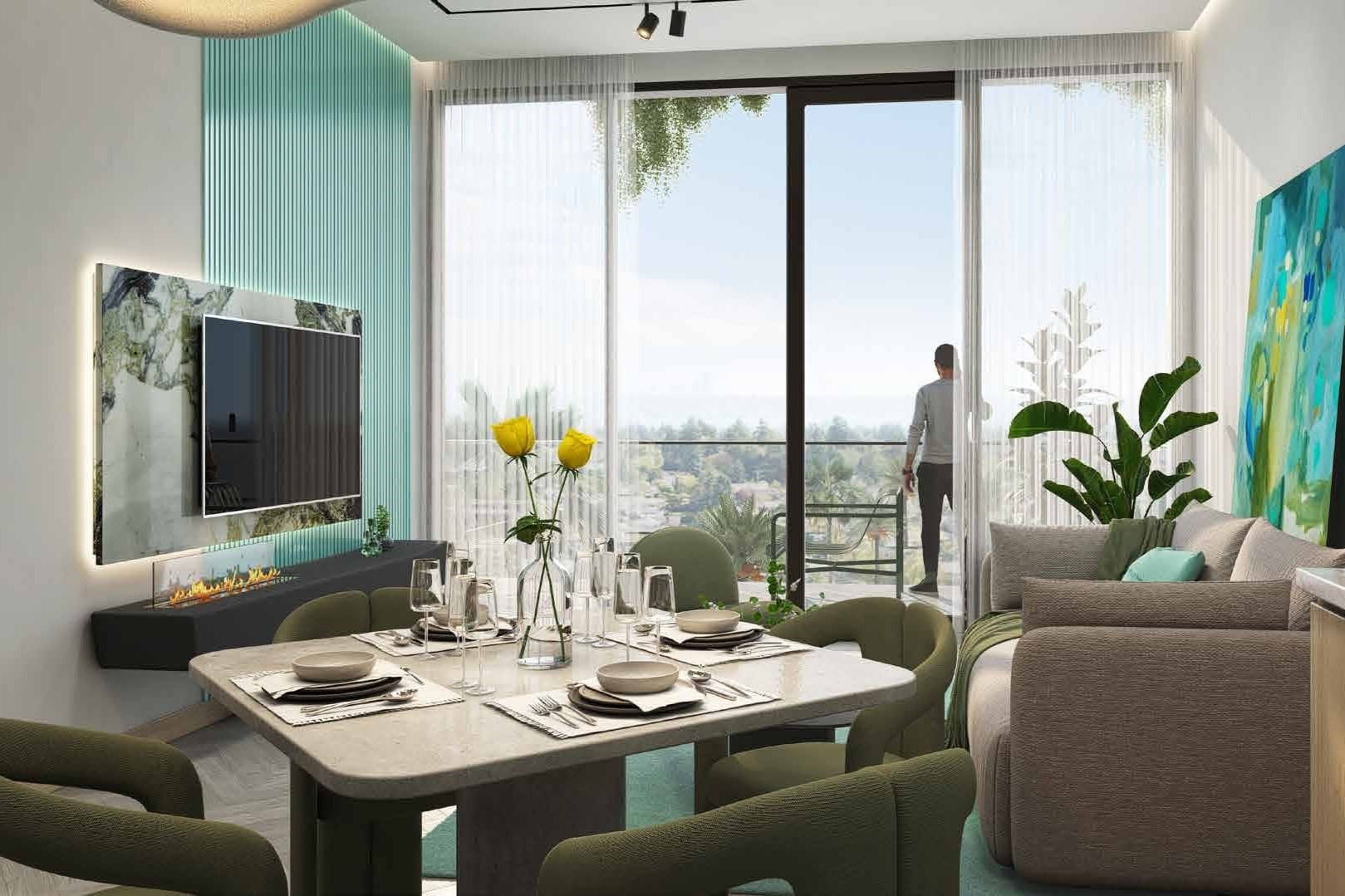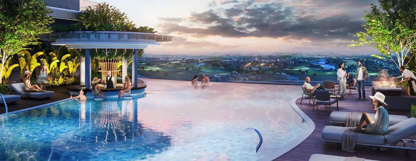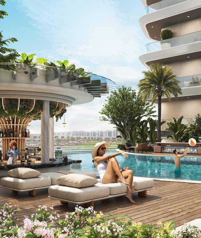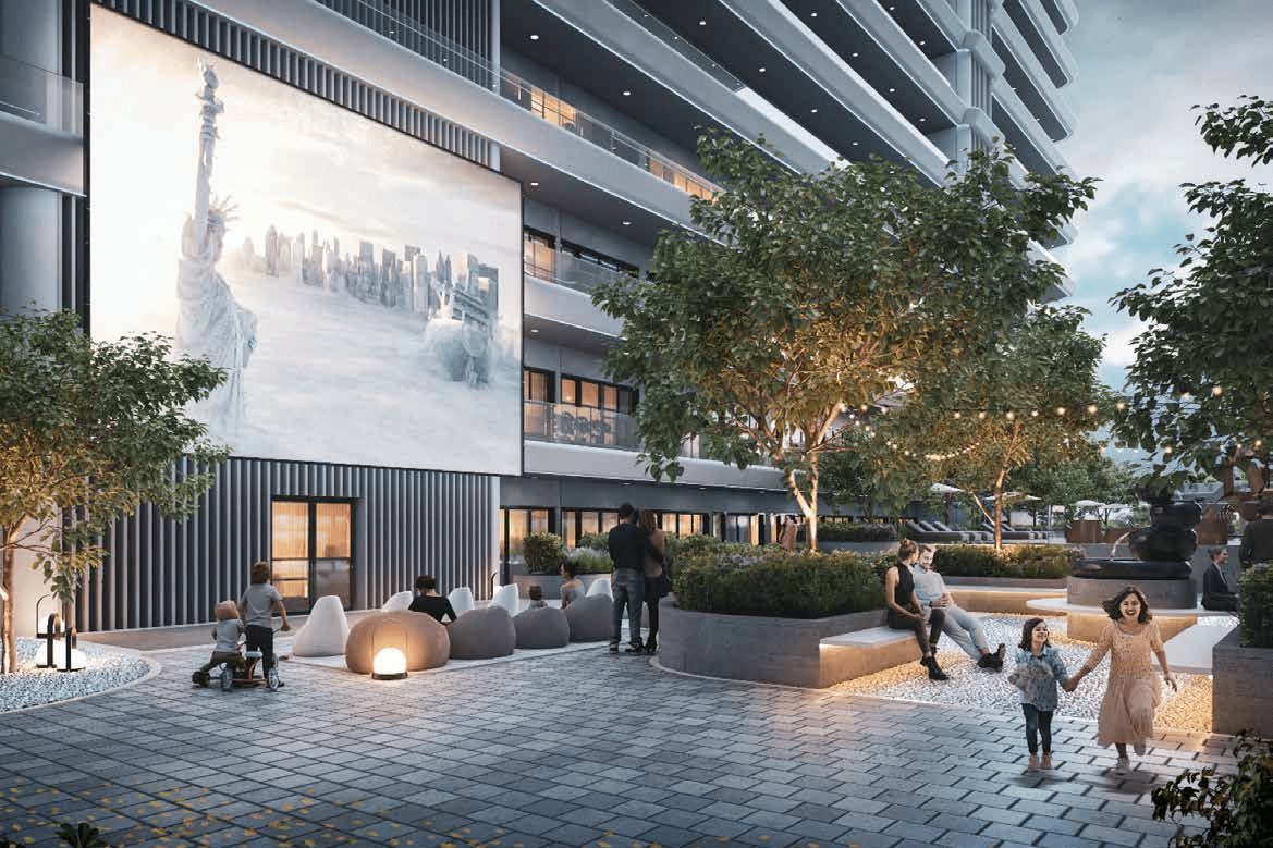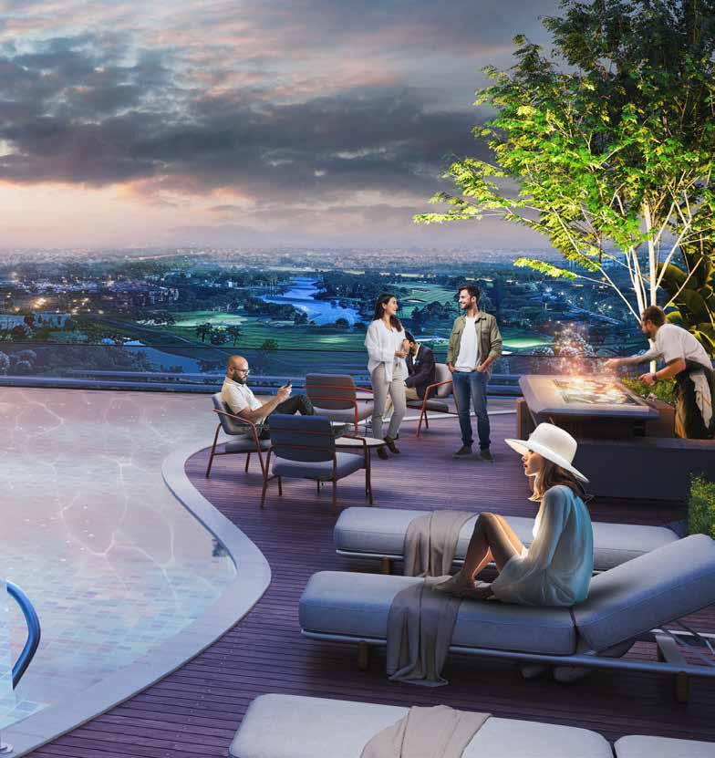 The complex offers a range of exclusive amenities, including a large swimming pool with a bar, a climbing wall, a state-of-the-art gym equipped with the latest technology, an open-air cinema, and a children's playground.