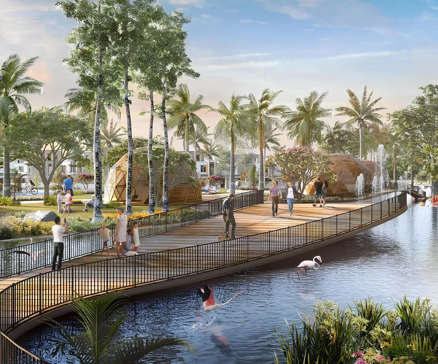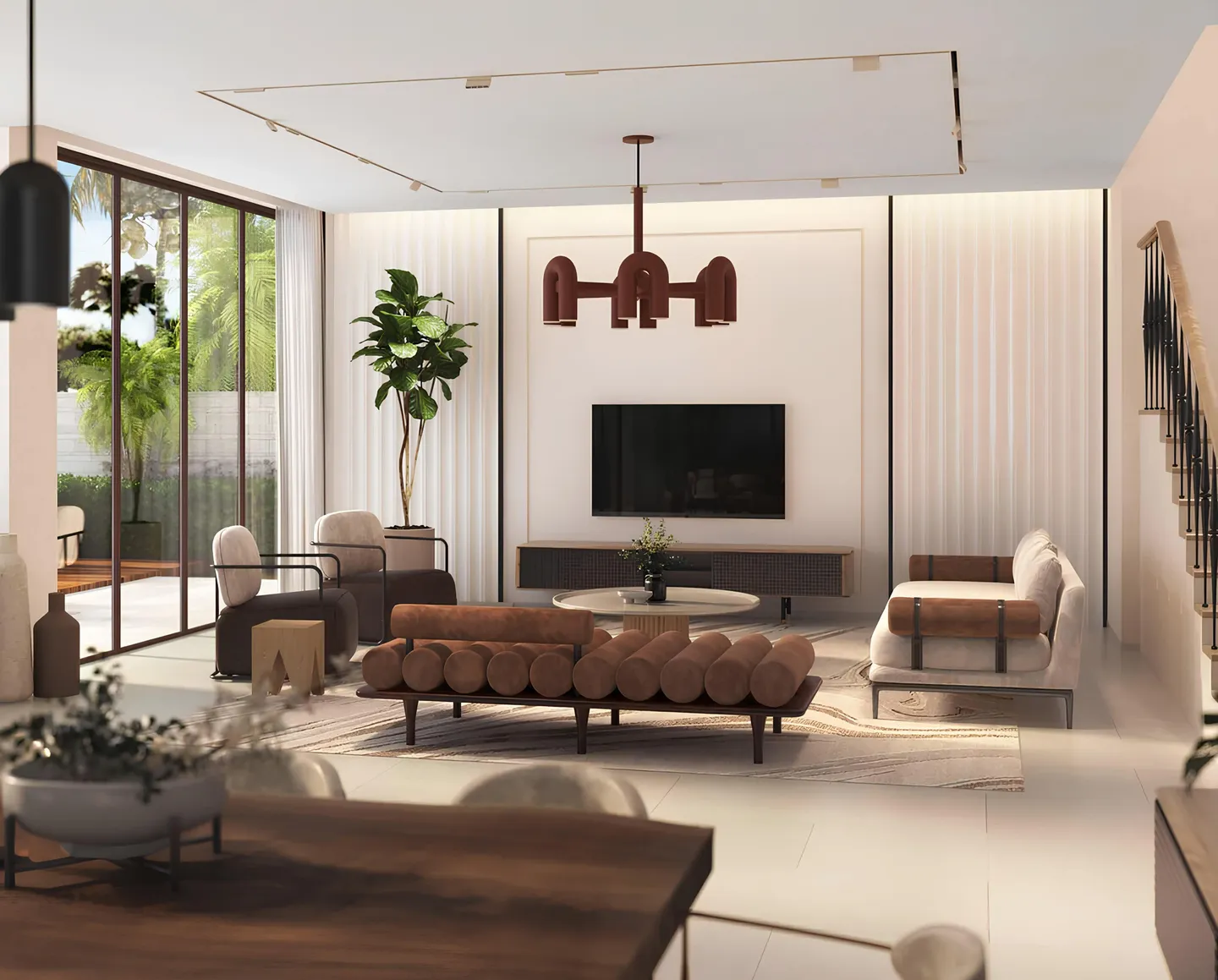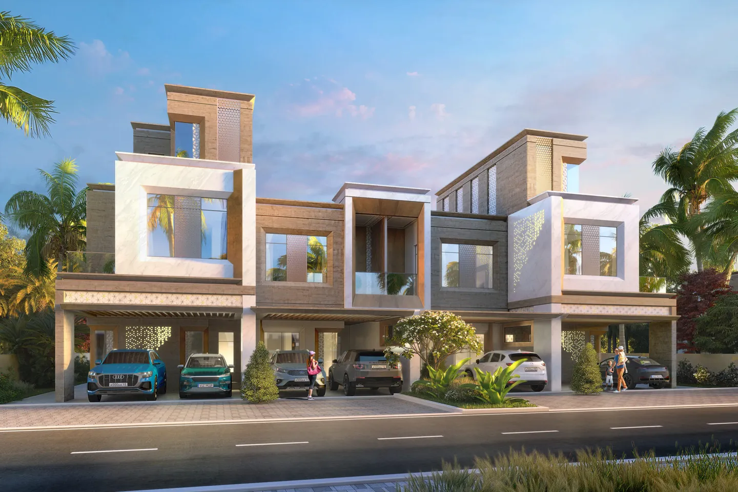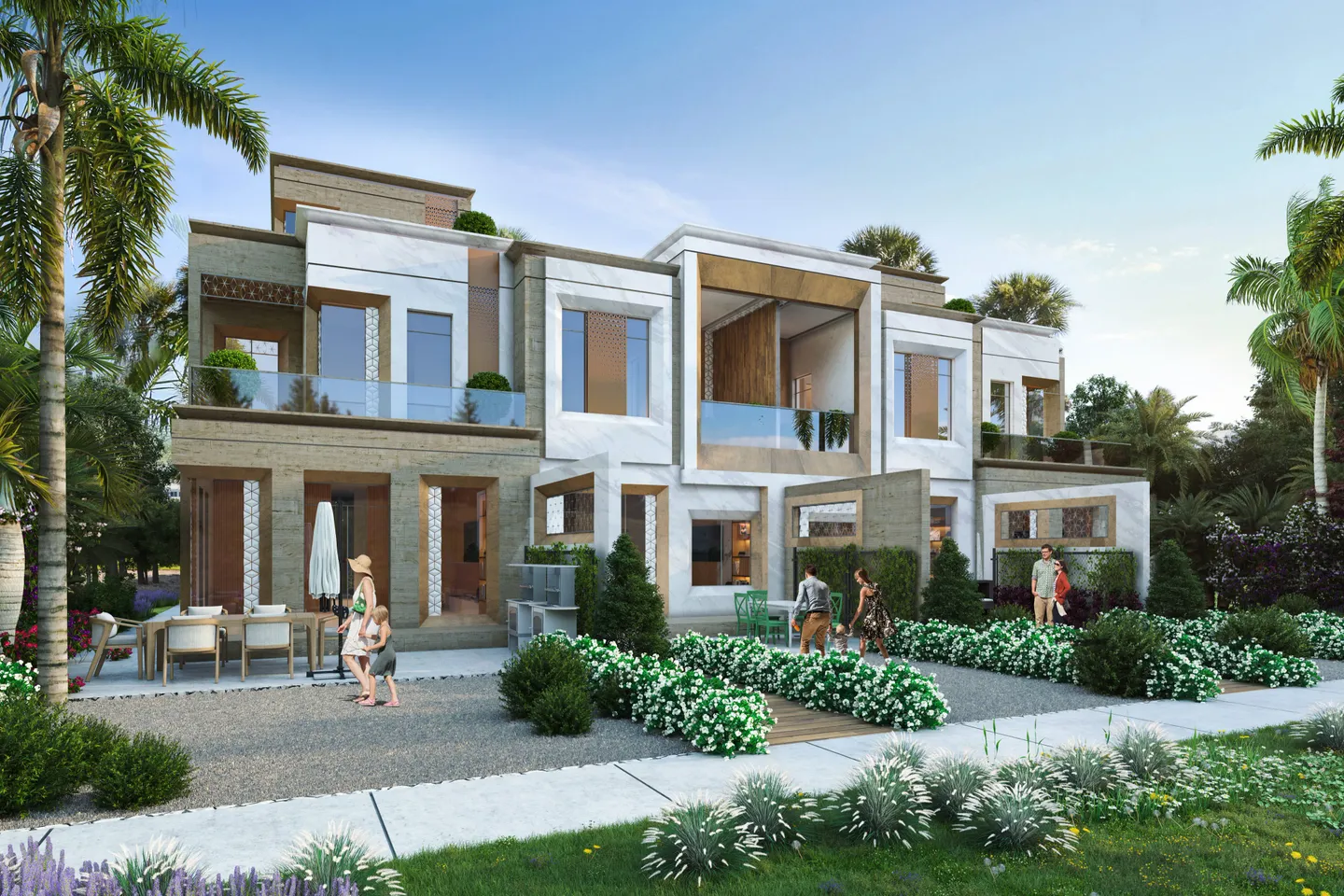Damac Lagoons - Monte Carlo impresses with its architectural style inspired by Mediterranean beauty. The light and bright houses, surrounded by greenery and azure waters, are filled with comfort and warmth thanks to natural wood elements. Spacious white walls, high windows and ceilings give a feeling of light and air, and stylish wooden accents and furniture in warm colors create a cozy atmosphere in each residence.