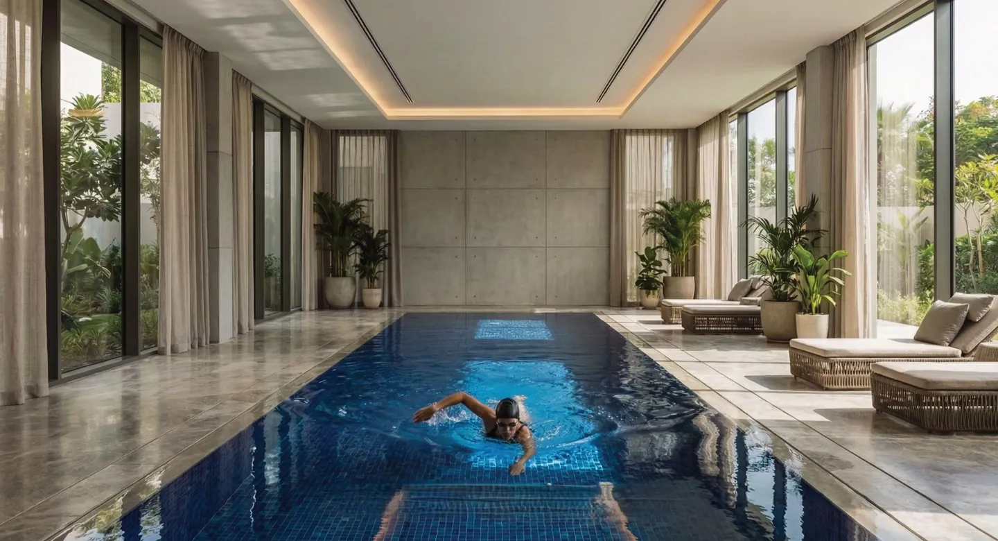 Residents enjoy a range of amenities, including indoor and outdoor swimming pools, lounge areas, a business centre, gym facilities, and dedicated spaces for relaxation and social interaction.