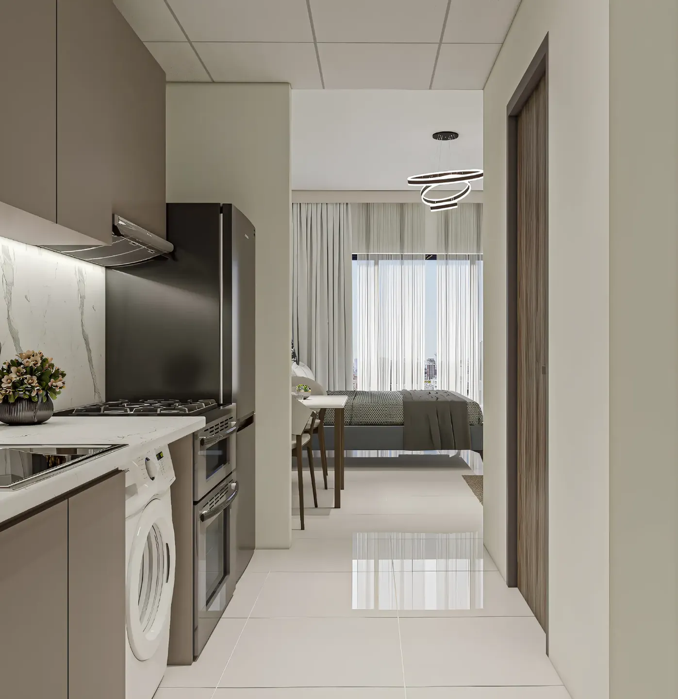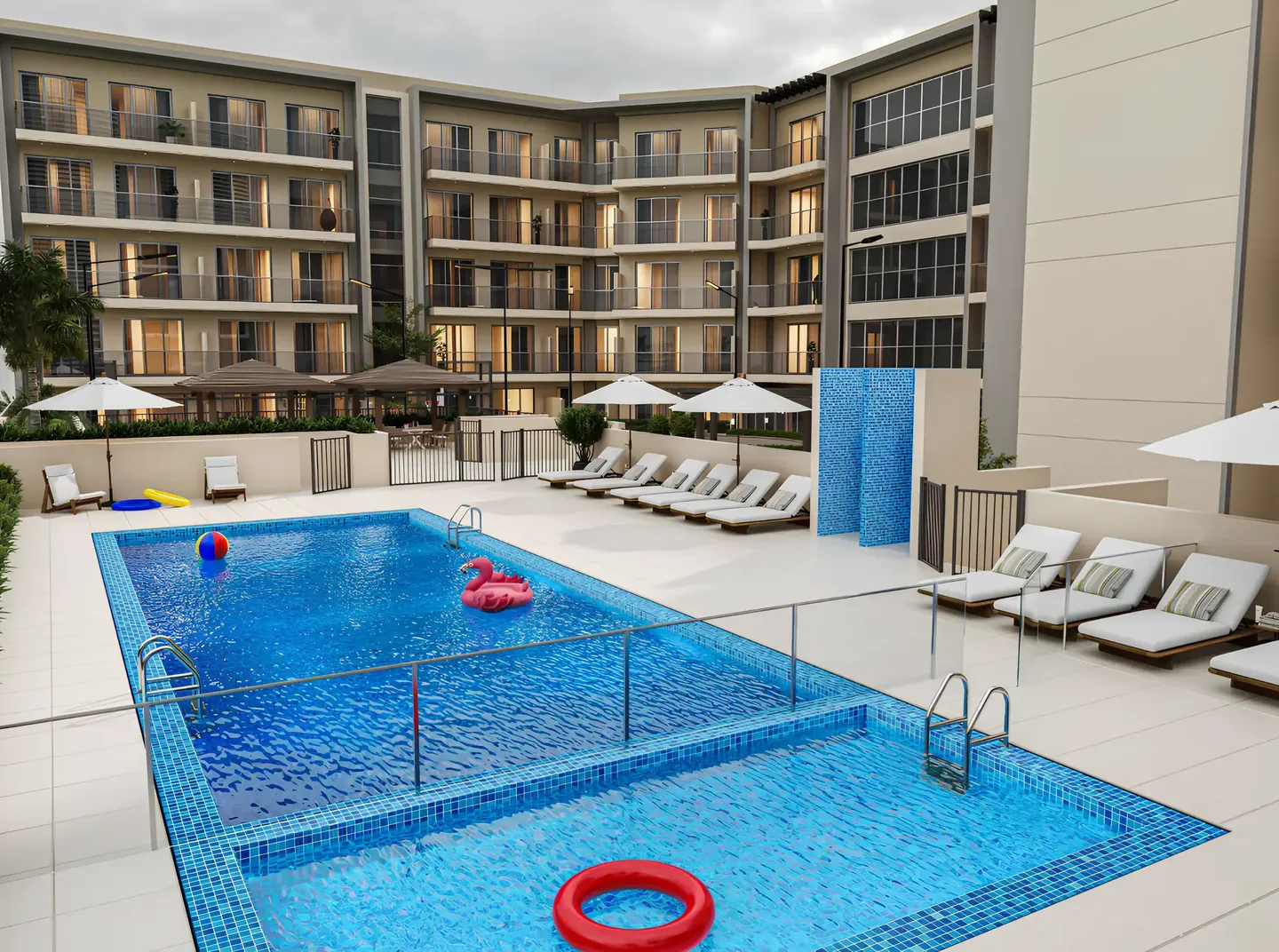 Glorious Central Residences — a residential complex from the developer Glorious Future Real Estate Development, exclusively presented by the agency Lavinia Properties. The building is designed in a modern architectural style with a simple exterior and carefully thought-out configuration: ground floor, podium and five residential levels. The complex offers studios, as well as one-and two-bedroom apartments designed with an emphasis on comfort and functionality. Spacious layouts, large windows and access to balconies fill the interior with natural light, creating a sense of spaciousness and comfort. The interior is decorated with modern materials in neutral tones. Built-in wardrobes and smart access system for convenience and security.