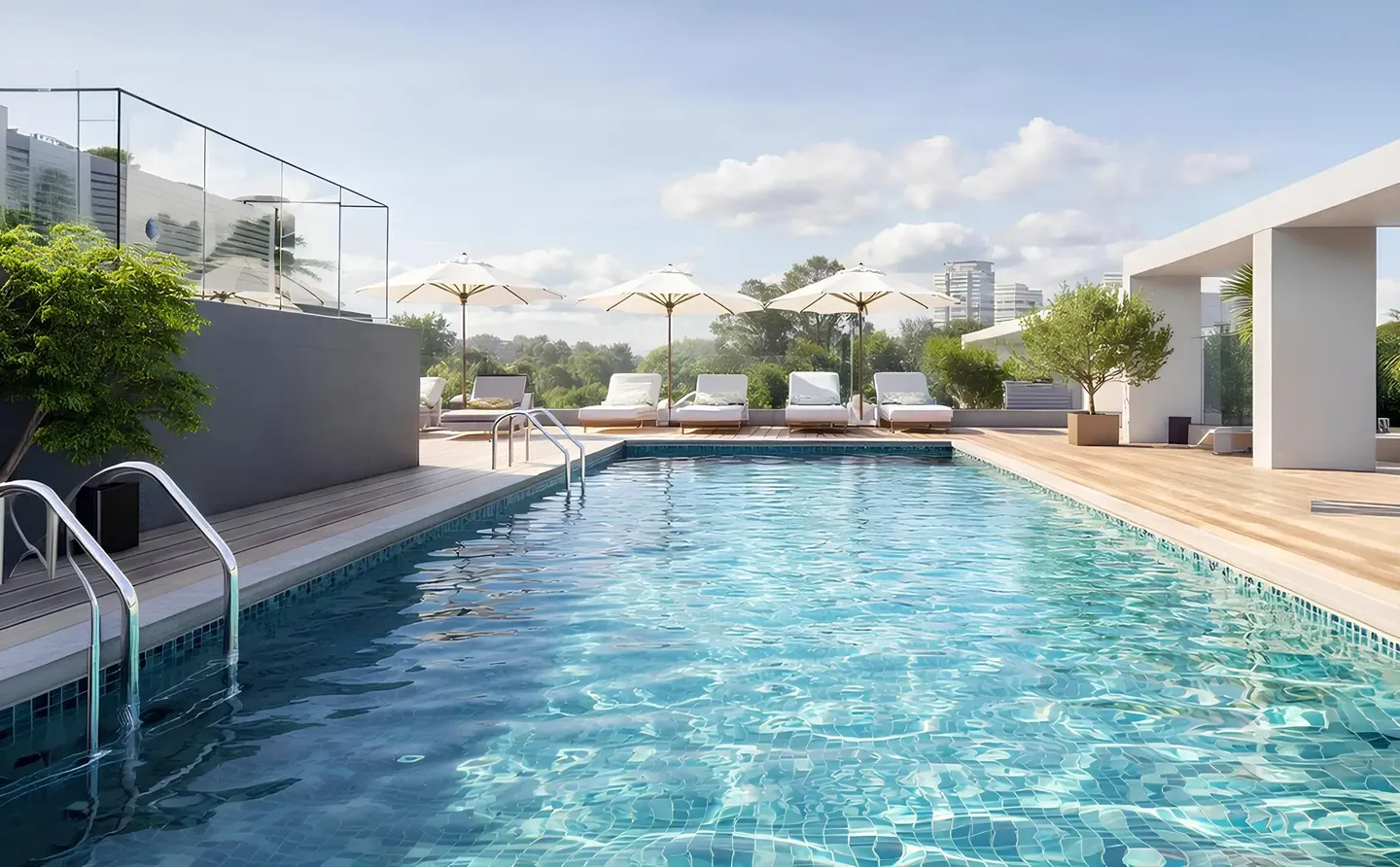 The development offers studios, one-bedroom apartments, and two-bedroom apartments. Layouts are designed for everyday comfort, with open living areas, large windows, and bright interiors that enhance the sense of space and natural light. Interiors are finished in a neutral palette with modern materials, and the residences are equipped with a smart home system that allows residents to control lighting, climate, and other home functions.
