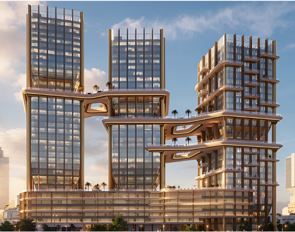 Radiant Bridges is a mixed-use development by Radiant Real Estate, located on Al Reem Island in Abu Dhabi. The project comprises three towers, each with three basement levels, a ground level with commercial spaces, five podium levels, and from twenty-two to twenty-six floors dedicated to residential and office units. The residential offering includes studios, one-, two-, and three-bedroom apartments, as well as three-bedroom duplex residences.