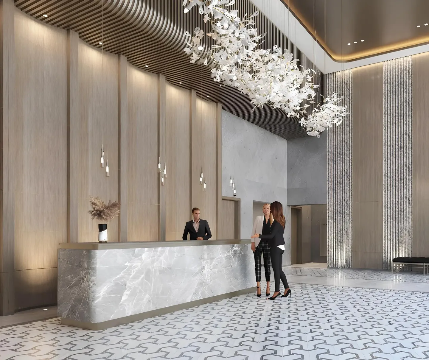 Key amenities include a swimming pool, fitness space, landscaped terraces, and a children’s play area.