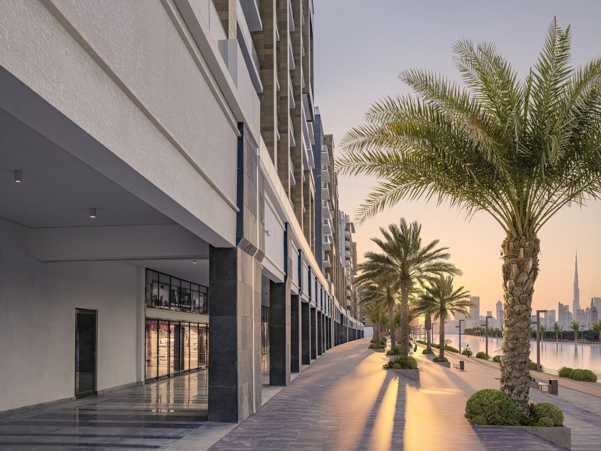 Residents enjoy luxurious amenities including infinity pools, a French-Riviera-inspired boulevard with outdoor dining, exclusive boutiques, indoor and outdoor playgrounds, premium laundry, and automatic car wash services.
