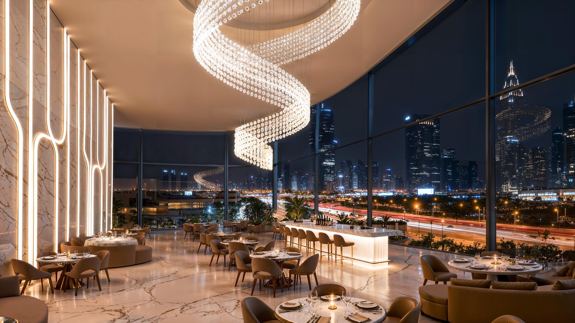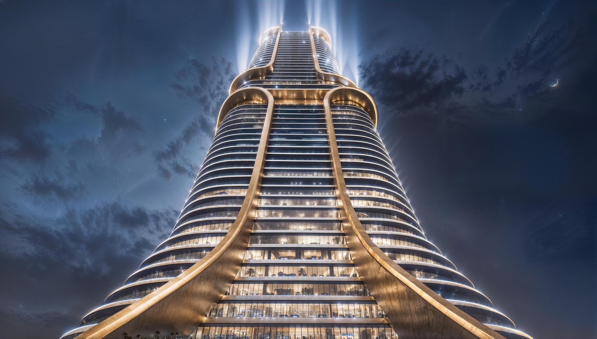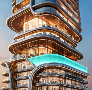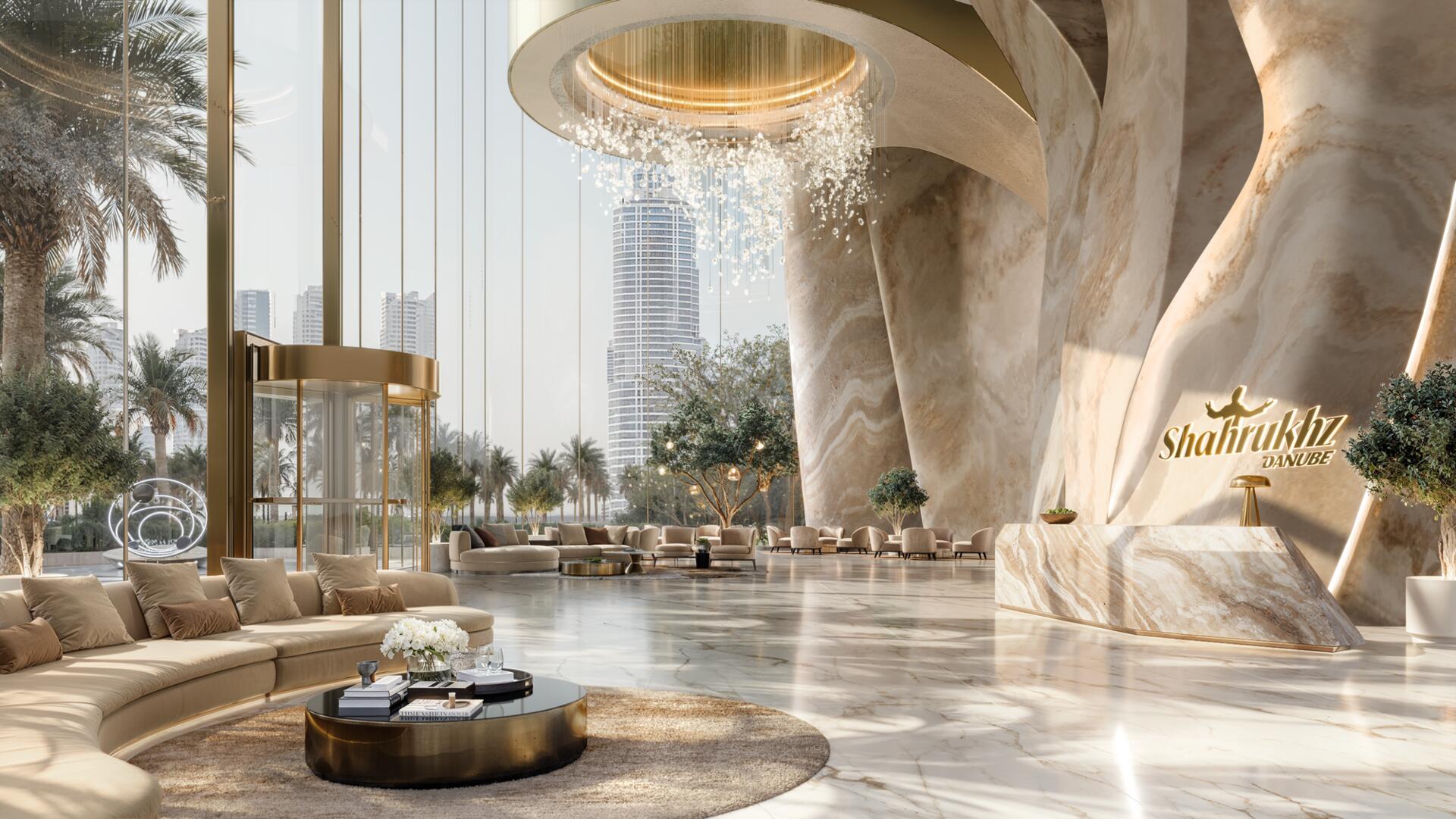 SHAHRUKHZ by Danube is an office skyscraper by Danube Group, located on Sheikh Zayed Road in Dubai. The architecture is defined by a dynamic silhouette, panoramic glazing and a strong emphasis on the prestige of the arrival experience, including a double-height lobby with a distinctive spatial design.