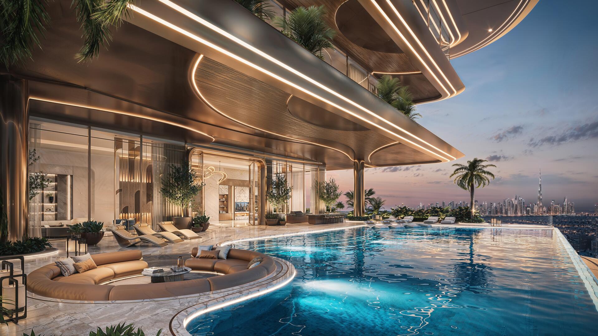 The project’s location provides quick access to key destinations across the city: Dubai Marina, Jumeirah Beach and Burj Al Arab — approximately 8 minutes, Dubai Mall and Burj Khalifa — 12 minutes, Dubai World Trade Center — 15 minutes, Dubai EXPO — 20 minutes, Dubai International Airport — 20 minutes, Al Maktoum International Airport — 30 minutes.