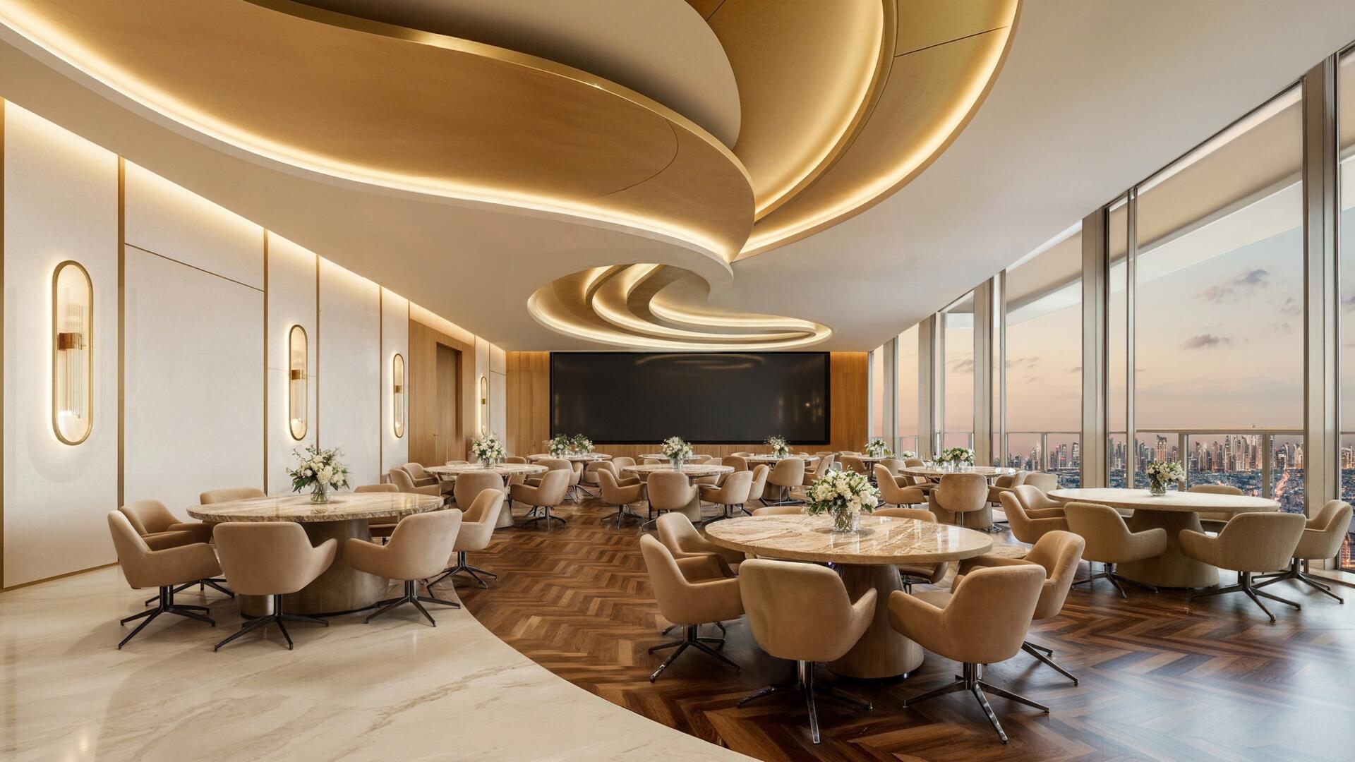 The building’s infrastructure is designed with a focus on comfort, productivity and service. The complex features a wide range of amenities distributed across multiple levels, including lounge spaces, a fitness zone, meeting and event halls, prayer halls, sports and recreational areas, as well as a helipad.